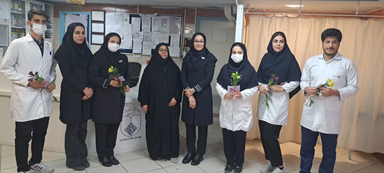 بازدید و تبریک روز پرستار توسط نماینده خیریه باران مهر علوی روز یکشنبه مورخ 1404/8/11 نماینده خیریه باران مهر علوی به مناسبت ولادت حضرت زینب (س) و روز پرستار با حضور در بخش ها و اهدا گل از زحمات کادر درمان قدردانی نمودند.